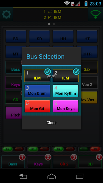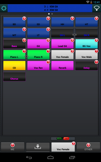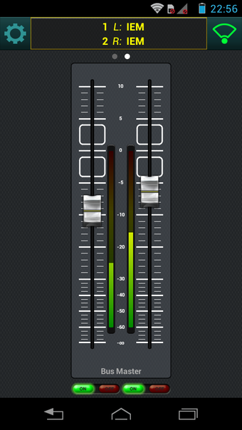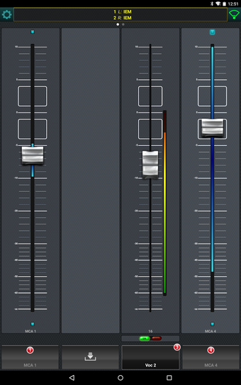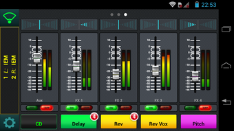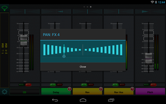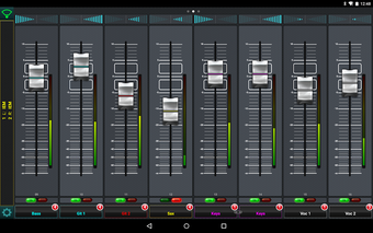 Appen ger olika faders för varje kanal och låter dig gruppera kanalerna för en-faderskontroll. Appen erbjuder också panoramareglage för varje kanal så att du kan mixa till en stereo aux-buss.