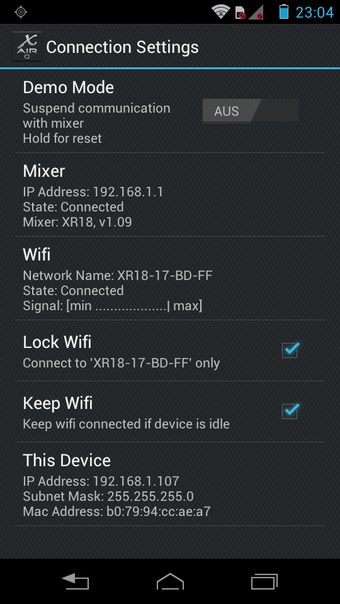 The X AIR Q Android-appen gör att du kan mixa din musik på din egen Android-enhet eller surfplatta med hjälp av din Android-drivna musikapparat (dvs. smartphone eller surfplatta). Appen ger full åtkomst till alla ingångskanaler på X AIR-mixern, antingen individuellt eller genom appens MCA (Mix Control Association) faders.